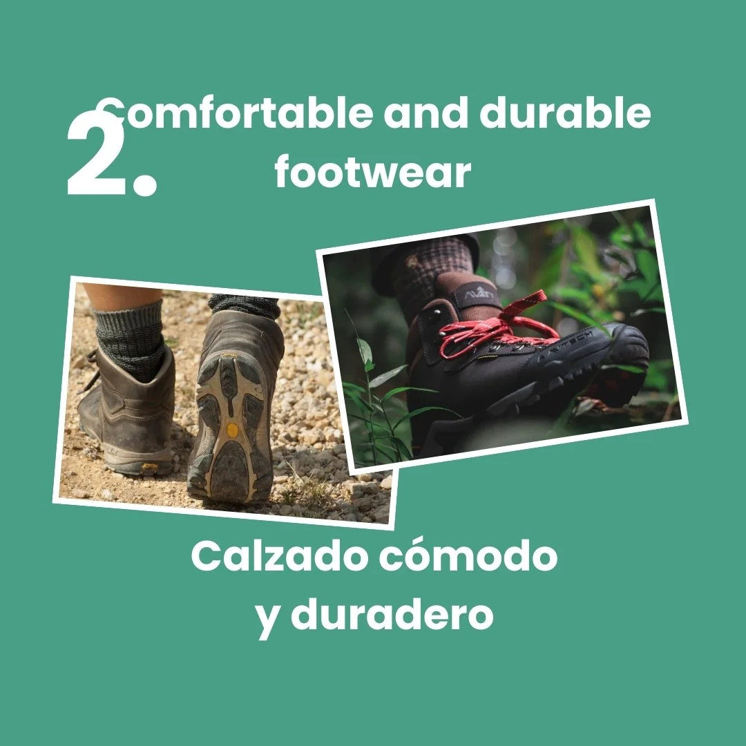Tayrona’s terrain is diverse: you’ll walk on dirt trails, cross rivers, and climb hills. It’s essential to bring trekking shoes or sports sneakers with good grip. If possible, choose footwear made from recycled materials or brands committed to sustainability. This ensures quality while reducing your environmental impact.